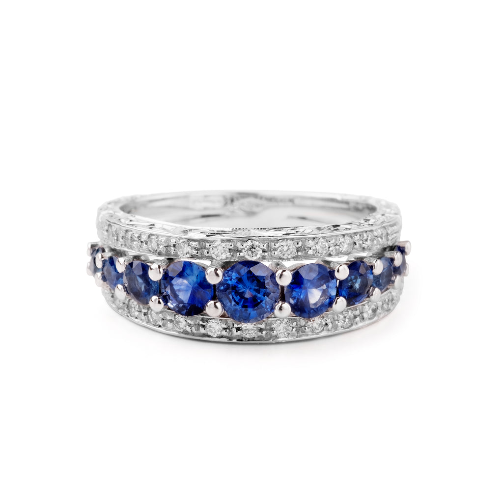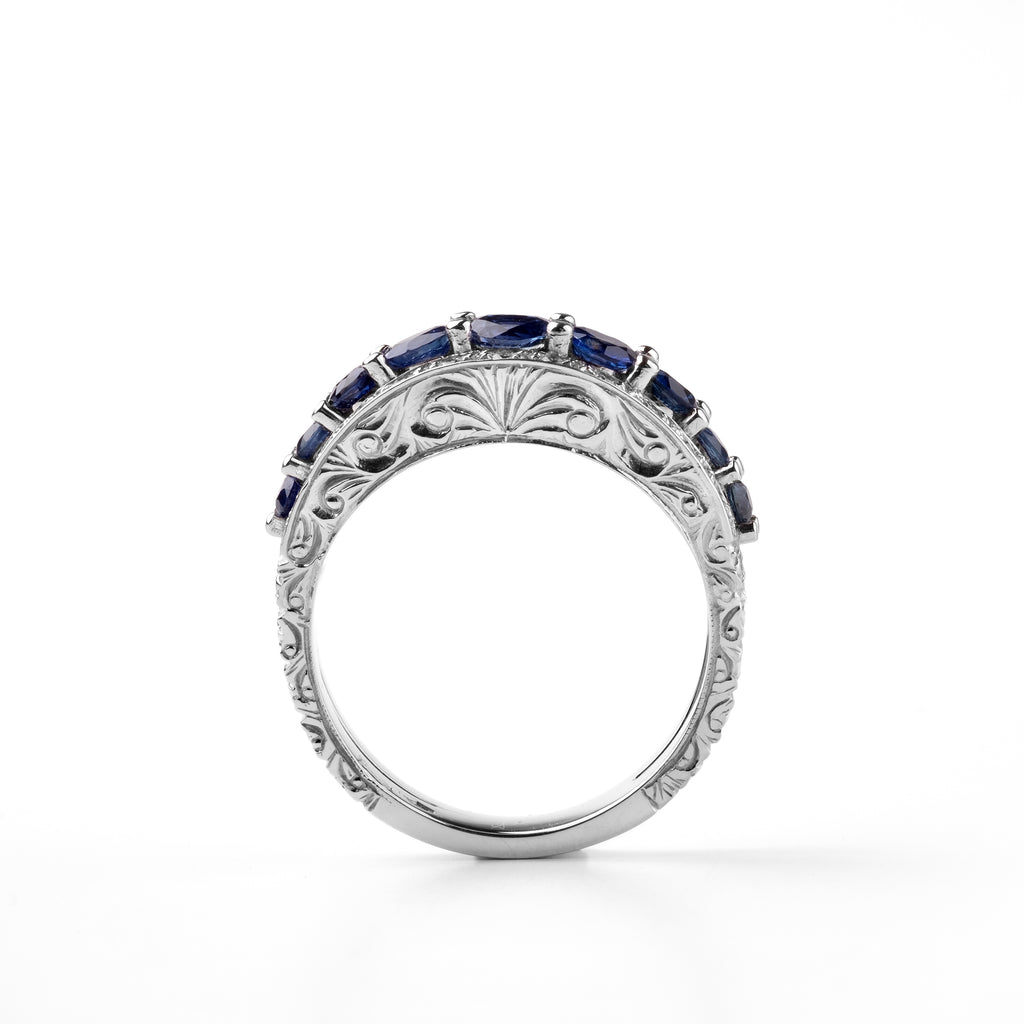 A beautiful ring with Florentine engraving. Precious metals and precious stones are dressed in velvet, silk and damask. Florentine engraving is one of the important jewelry techniques, which has firstly appeared in the 15th century in Florence.